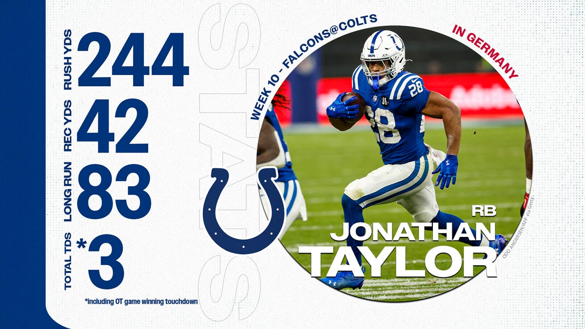 Jonathan Taylor delivered a huge performance in the Colts’ thrilling overtime victory over the Falcons. It’s no surprise that Taylor once again earned the title of Colts Player of the Game after an outstanding display on the field.