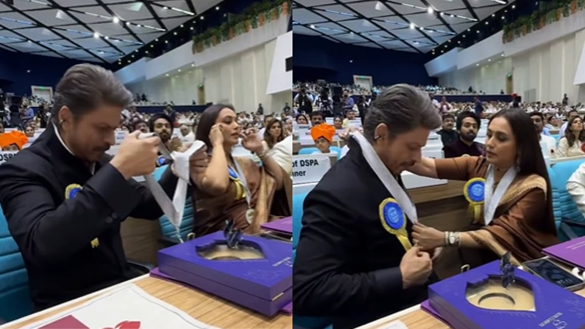 Shah Rukh Khan Struggles To Wear National Film Award Medal, Rani Mukerji Helps Him; Video Goes Viral